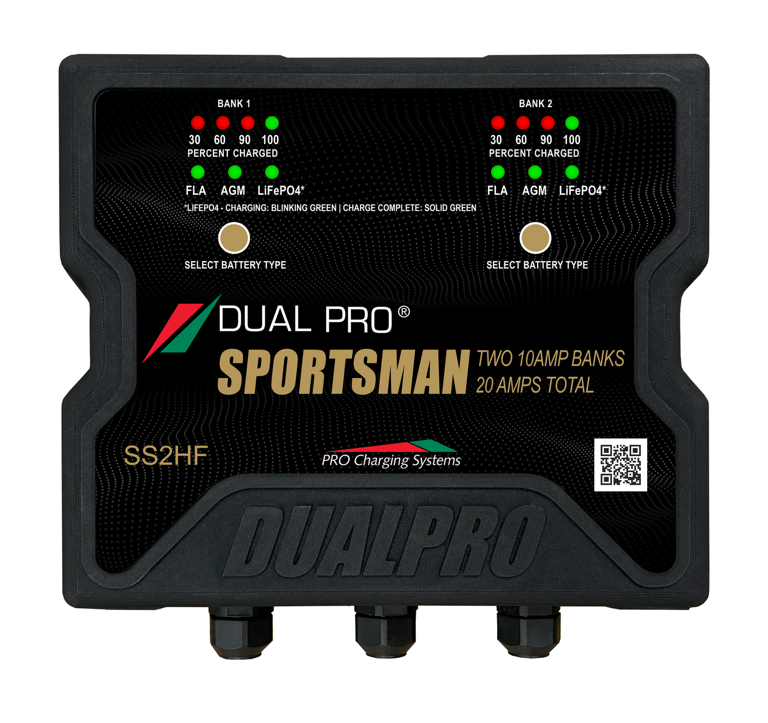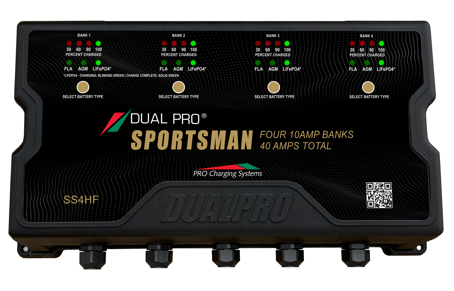 All SSHF chargers allow you to configure each bank to charge any combination of 12V Lithium (LiFePO4), Lead-Acid or AGM batteries.